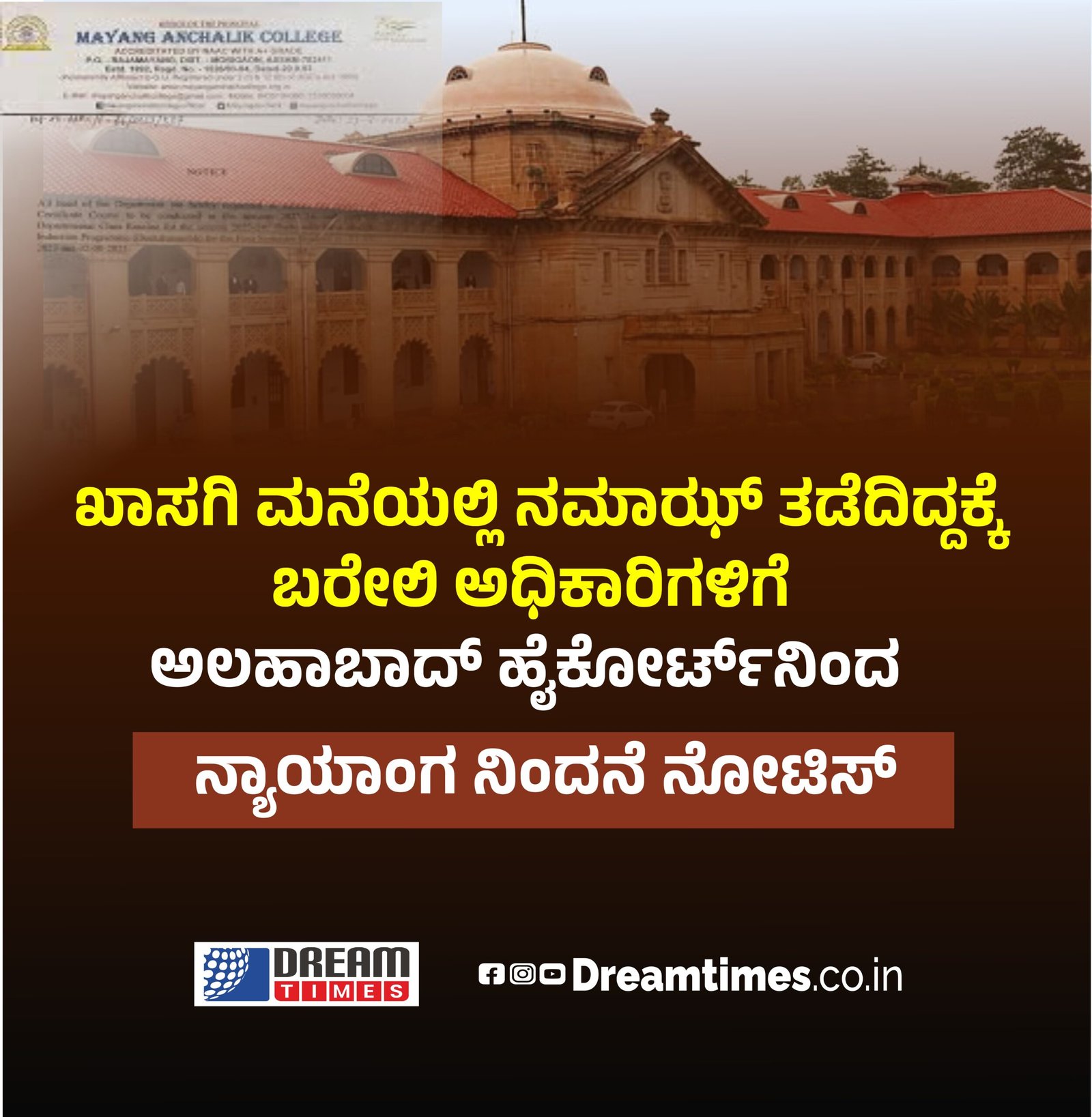 Sports ಖಾಸಗಿ ಮನೆಯಲ್ಲಿ ನಮಾಝ್ ತಡೆದಿದ್ದಕ್ಕೆ ಬರೇಲಿ ಅಧಿಕಾರಿಗಳಿಗೆ ಅಲಹಾಬಾದ್ ಹೈಕೋರ್ಟ್ನಿಂದ ನ್ಯಾಯಾಂಗ ನಿಂದನೆ ನೋಟಿಸ್ BY Irshad February 19, 2026 0 Comments Read in 0 Minutes Spread the love