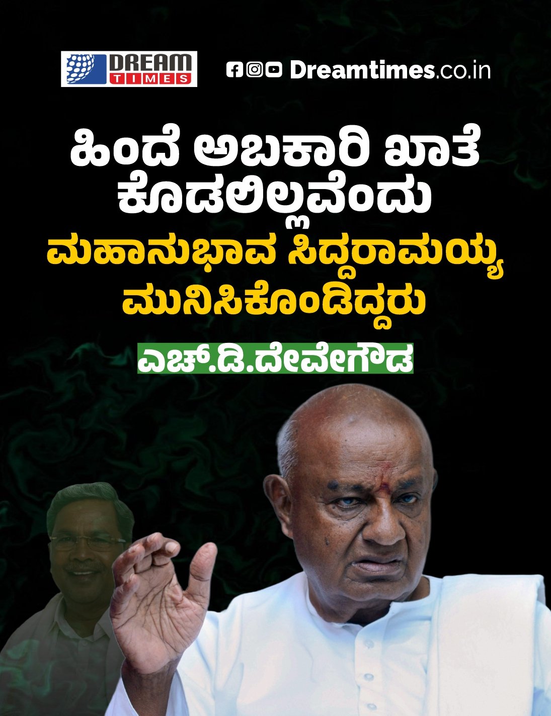 ಹಿಂದೆ ಅಬಕಾರಿ ಖಾತೆ ಕೊಡಲಿಲ್ಲವೆಂದು ಮಹಾನುಭಾವ ಸಿದ್ದರಾಮಯ್ಯ ಮುನಿಸಿಕೊಂಡಿದ್ದರು : ಎಚ್.ಡಿ.ದೇವೇಗೌಡ