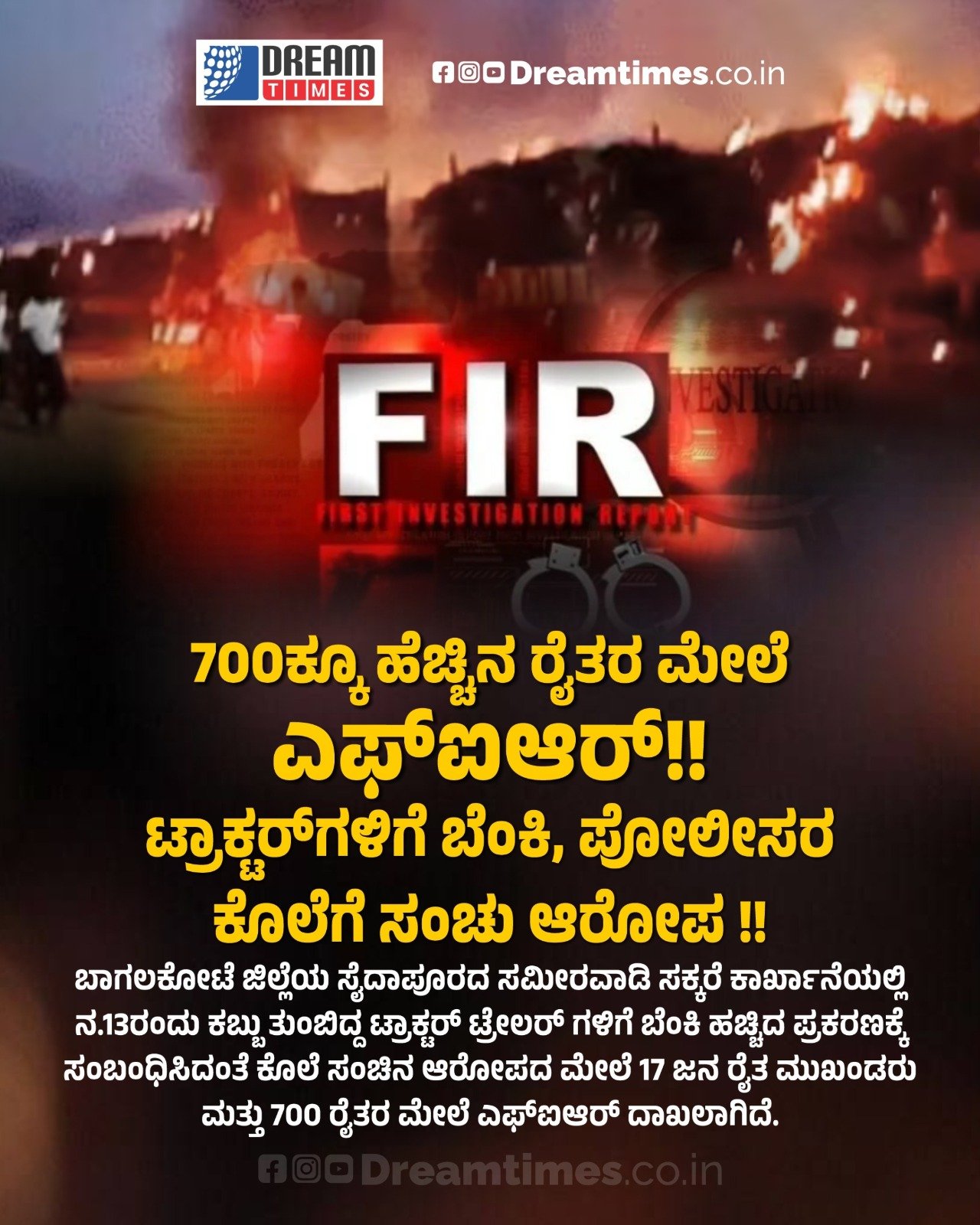700ಕ್ಕೂ ಹೆಚ್ಚಿನ ರೈತರ ಮೇಲೆ ಎಫ್ಐಆರ್!!