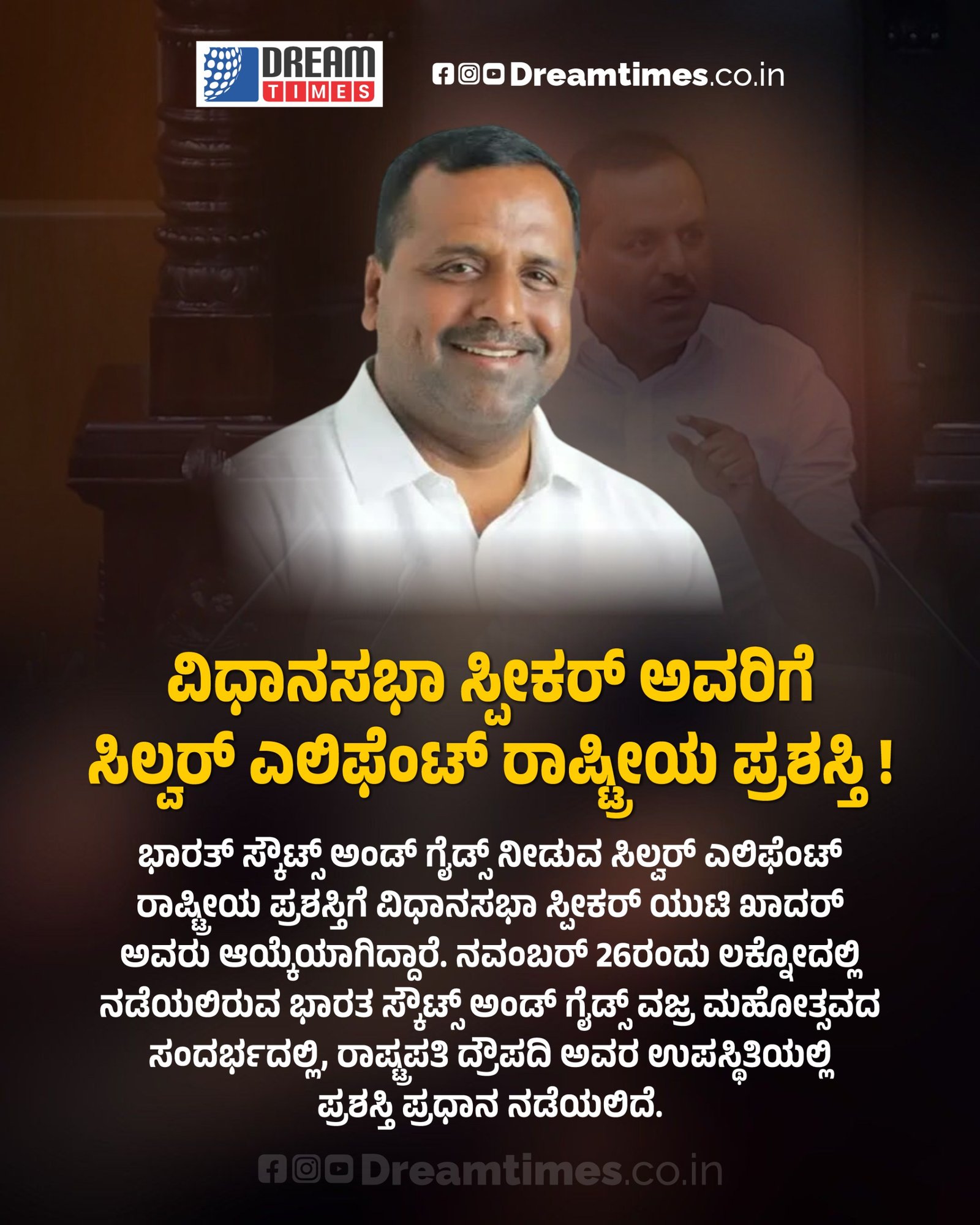 ವಿಧಾನಸಭಾ ಸ್ಪೀಕರ್ ಅವರಿಗೆ ಸಿಲ್ವರ್ ಎಲಿಫೆಂಟ್ ರಾಷ್ಟ್ರೀಯ ಪ್ರಶಸ್ತಿ!