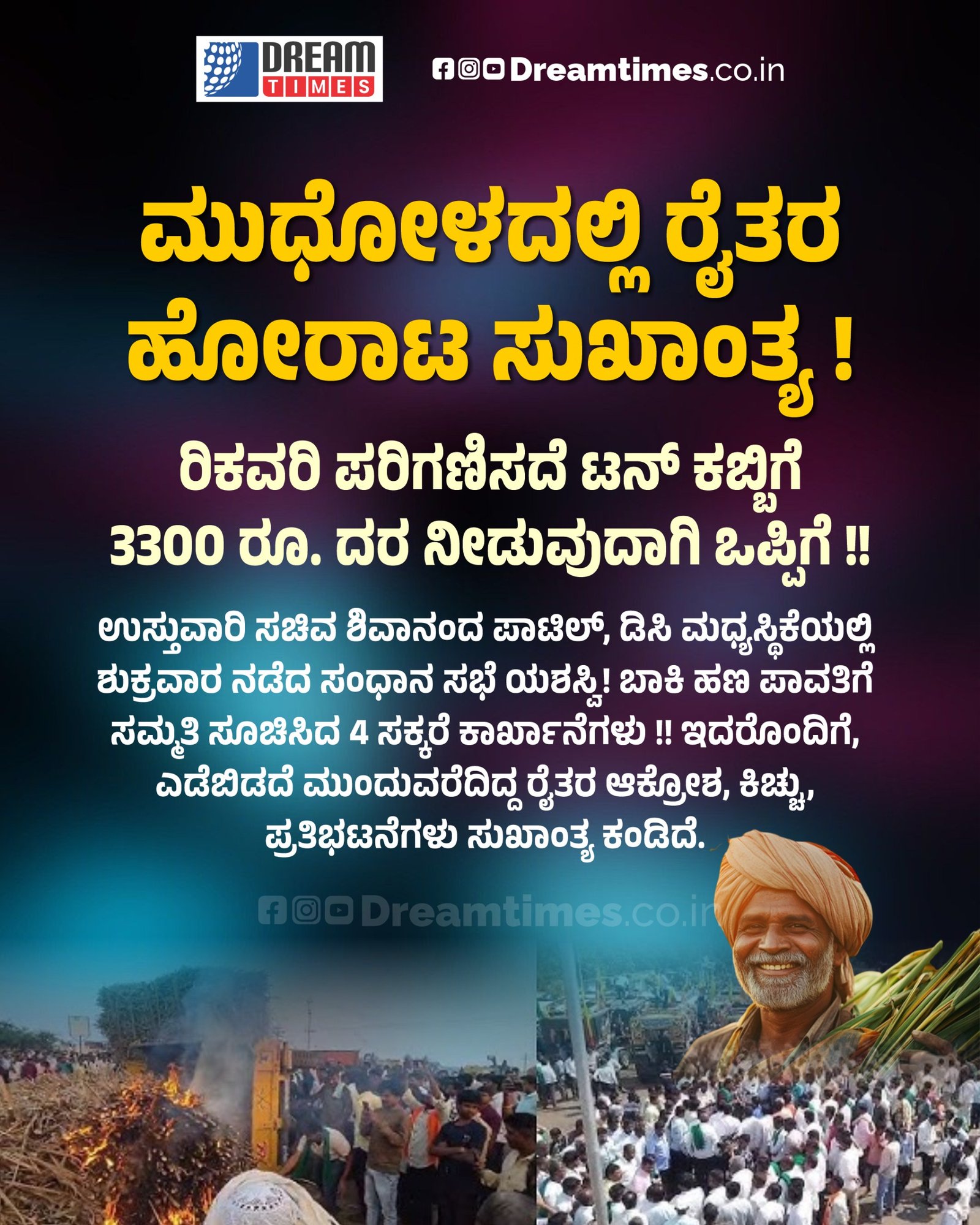ಮುಧೋಳದಲ್ಲಿ ರೈತರ ಹೋರಾಟ ಸುಖಾಂತ್ಯ !