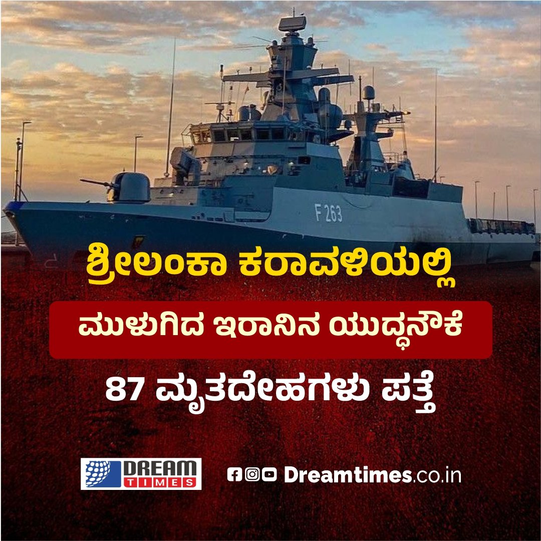 ಶ್ರೀಲಂಕಾ ಕರಾವಳಿಯಲ್ಲಿ ಮುಳುಗಿದ ಇರಾನಿನ ಯುದ್ಧನೌಕೆ: 87 ಮೃತದೇಹಗಳು ಪತ್ತೆ