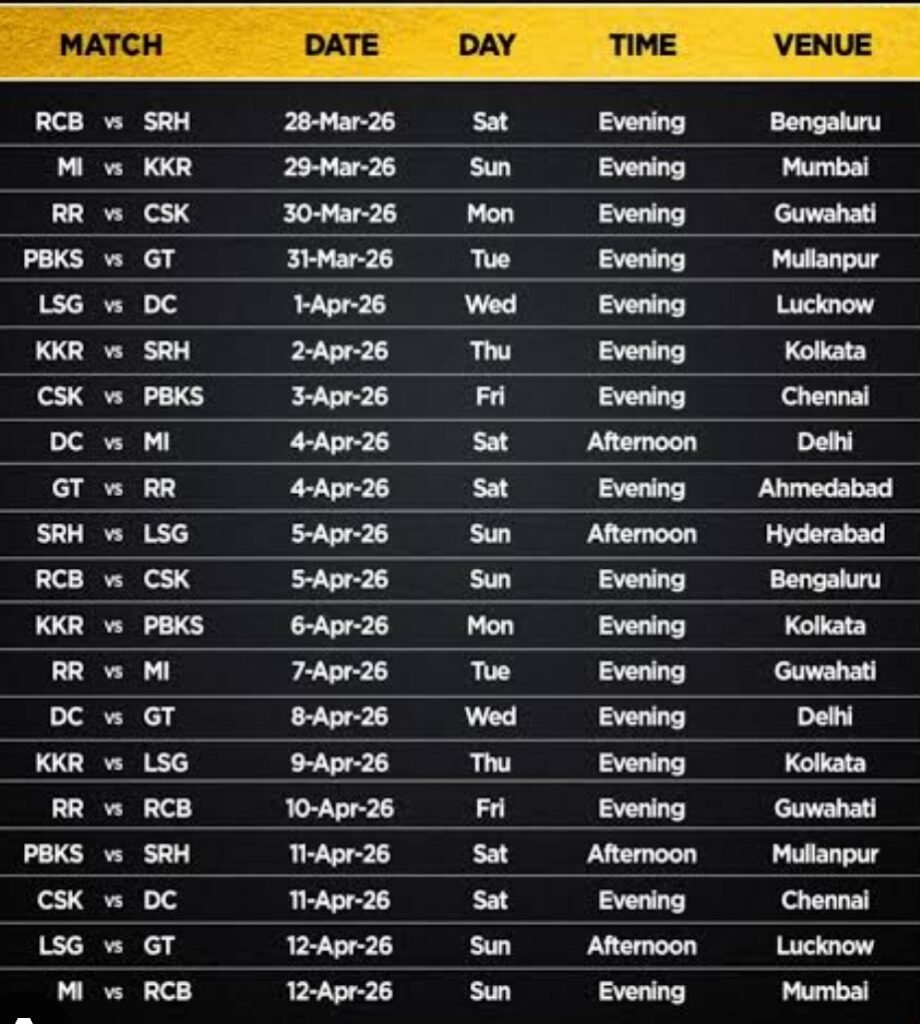 ಬಿಸಿಸಿಐನಿಂದ ಐಪಿಎಲ್ 2026 ವೇಳಾಪಟ್ಟಿ ಪ್ರಕಟ : ಮಾರ್ಚ್ 28 ರಿಂದ ಪ್ರಾರಂಭ