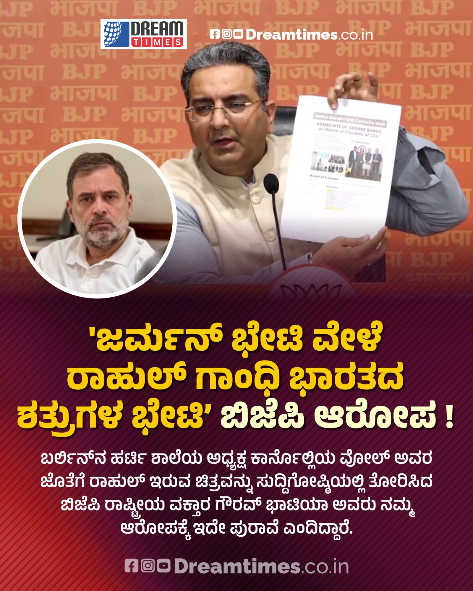 ಬರ್ಲಿನ್‌ನ ಹರ್ಟಿ ಶಾಲೆಯ ಅಧ್ಯಕ್ಷ ಕಾರ್ನೊಲ್ಲಿಯ ವೋಲ್ ಅವರ ಜೊತೆಗೆ ರಾಹುಲ್ ಇರುವ ಚಿತ್ರವನ್ನು ಸುದ್ದಿಗೋಷ್ಠಿಯಲ್ಲಿ ತೋರಿಸಿದ ಬಿಜೆಪಿ ರಾಷ್ಟ್ರೀಯ ವಕ್ತಾರ ಗೌರವ್ ಭಾಟಿಯಾ ಅವರು ನಮ್ಮ ಆರೋಪಕ್ಕೆ ಇದೇ ಪುರಾವೆ ಎಂದಿದ್ದಾರೆ.
