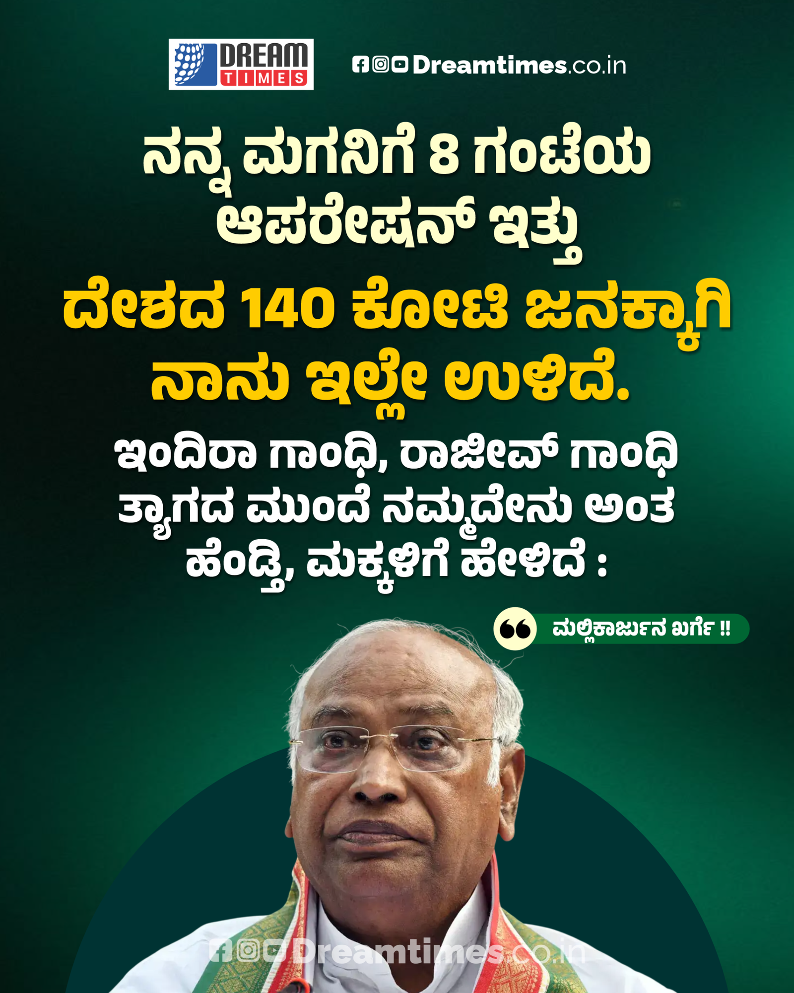 ಇಂದಿರಾ ಗಾಂಧಿ, ರಾಜೀವ್ ಗಾಂಧಿ ತ್ಯಾಗದ ಮುಂದೆ ನಮ್ಮದೇನು ಅಂತ ಹೆಂಡ್ತಿ, ಮಕ್ಕಳಿಗೆ ಹೇಳಿದೆ : ಮಲ್ಲಿಕಾರ್ಜುನ ಖರ್ಗೆ !!