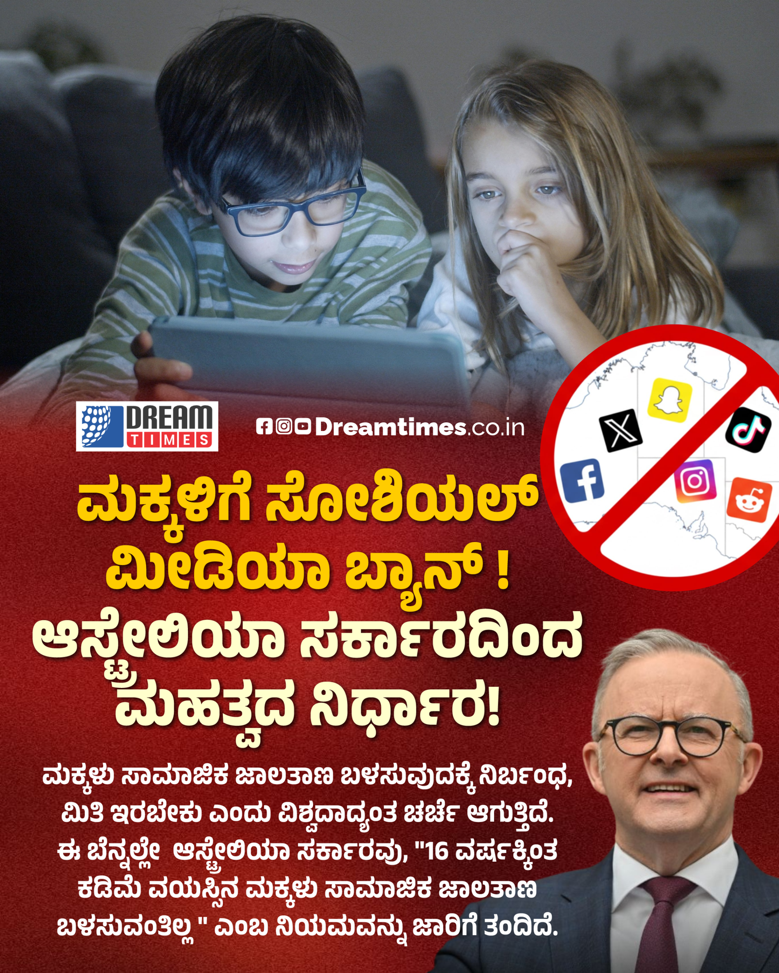 ಮಕ್ಕಳಿಗೆ ಸೋಶಿಯಲ್ ಮೀಡಿಯಾ ಬ್ಯಾನ್ !ಆಸ್ಟ್ರೇಲಿಯಾ ಸರ್ಕಾರದಿಂದ ಮಹತ್ವದ ನಿರ್ಧಾರ!