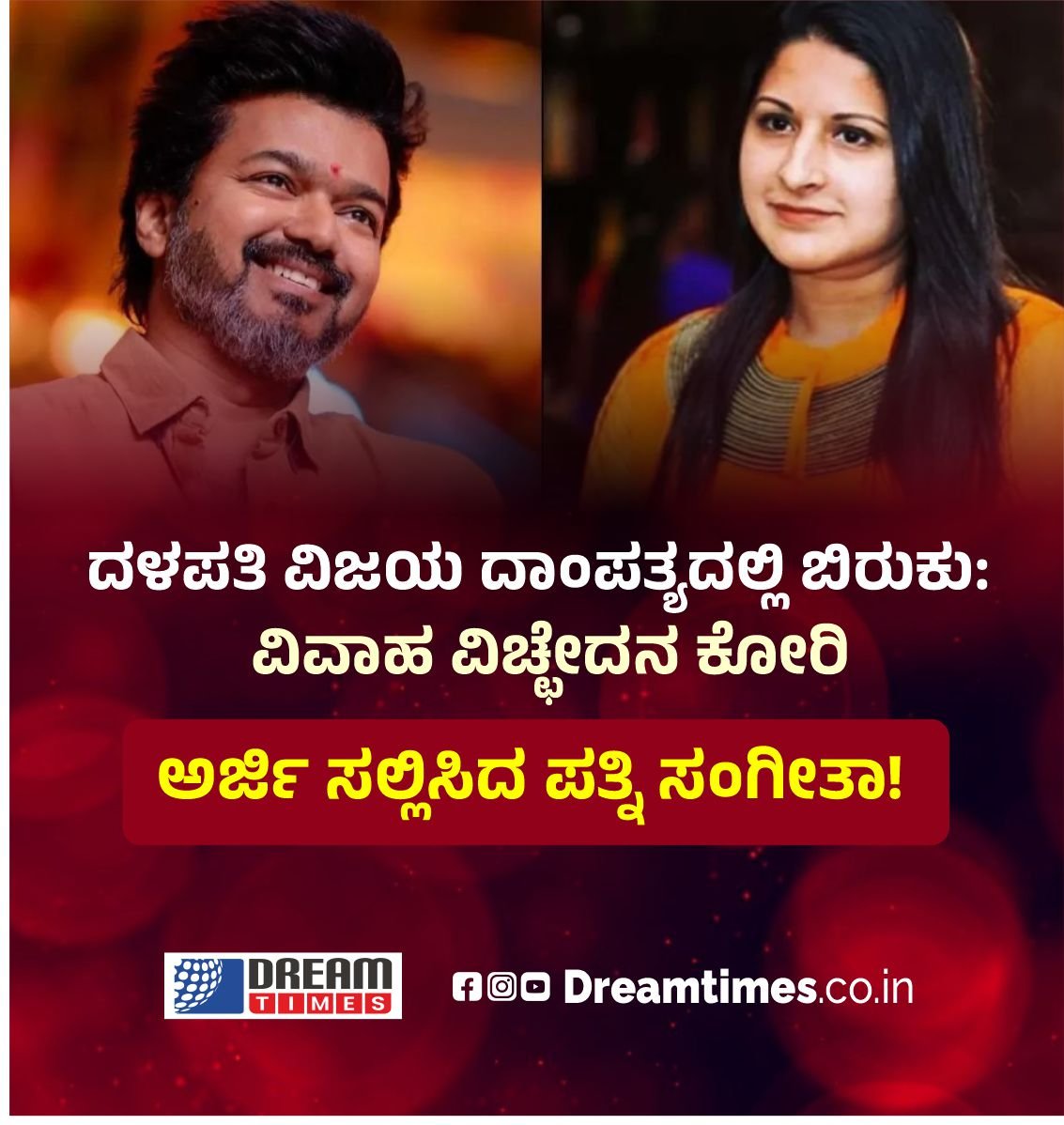 News ದಳಪತಿ ವಿಜಯ ದಾಂಪತ್ಯದಲ್ಲಿ ಬಿರುಕು: ವಿವಾಹ ವಿಚ್ಛೇದನ ಕೋರಿ ಅರ್ಜಿ ಸಲ್ಲಿಸಿದ ಪತ್ನಿ ಸಂಗೀತಾ! BY Irshad February 28, 2026 0 Comments Read in 0 Minutes Spread the love