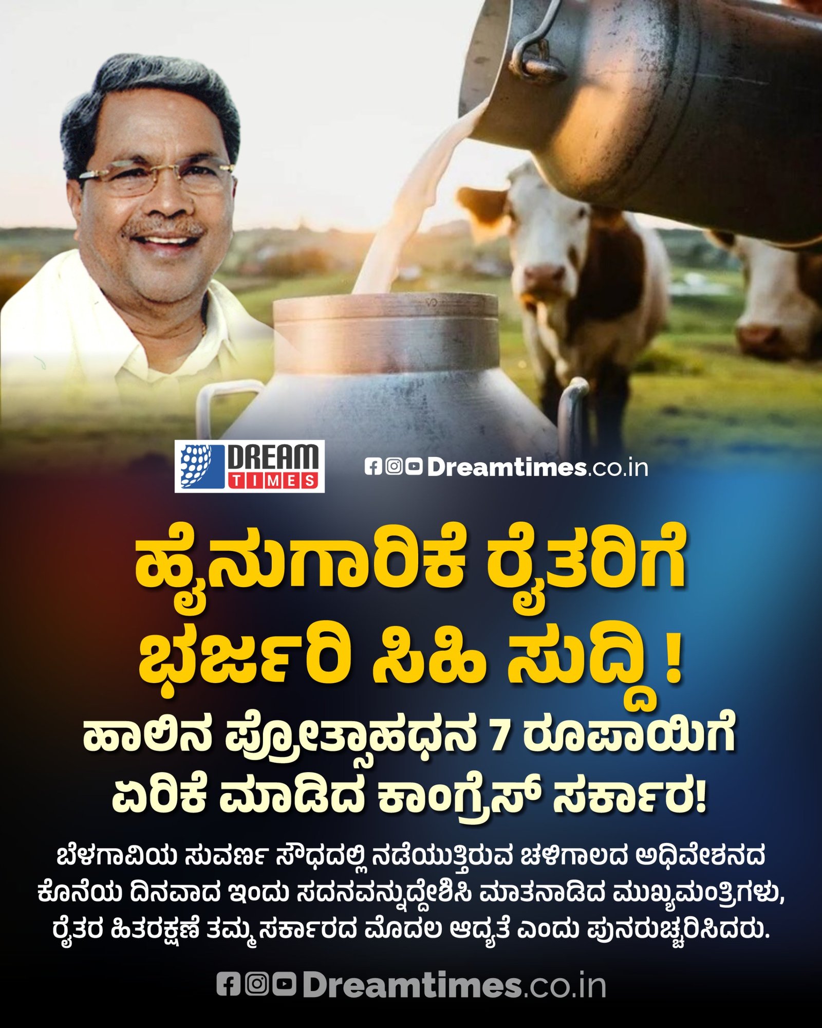 ಹೈನುಗಾರಿಕೆ ರೈತರಿಗೆ ಭರ್ಜರಿ ಸಿಹಿ ಸುದ್ದಿ !ಹಾಲಿನ ಪ್ರೋತ್ಸಾಹಧನ 7 ರೂಪಾಯಿಗೆ ಏರಿಕೆ ಮಾಡಿದ ಕಾಂಗ್ರೆಸ್ ಸರ್ಕಾರ!