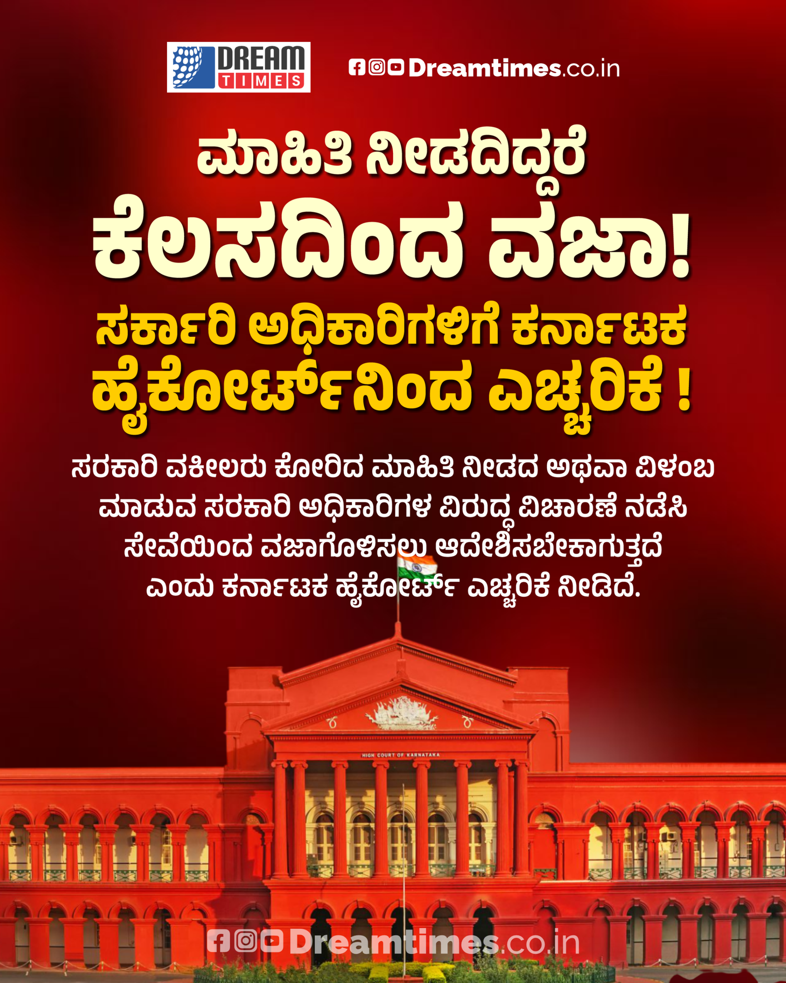 ಮಾಹಿತಿ ನೀಡದಿದ್ದರೆ ಕೆಲಸದಿಂದ ವಜಾ! ಸರ್ಕಾರಿ ಅಧಿಕಾರಿಗಳಿಗೆ ಕರ್ನಾಟಕ ಹೈಕೋರ್ಟ್‌ನಿಂದ ಎಚ್ಚರಿಕೆ !