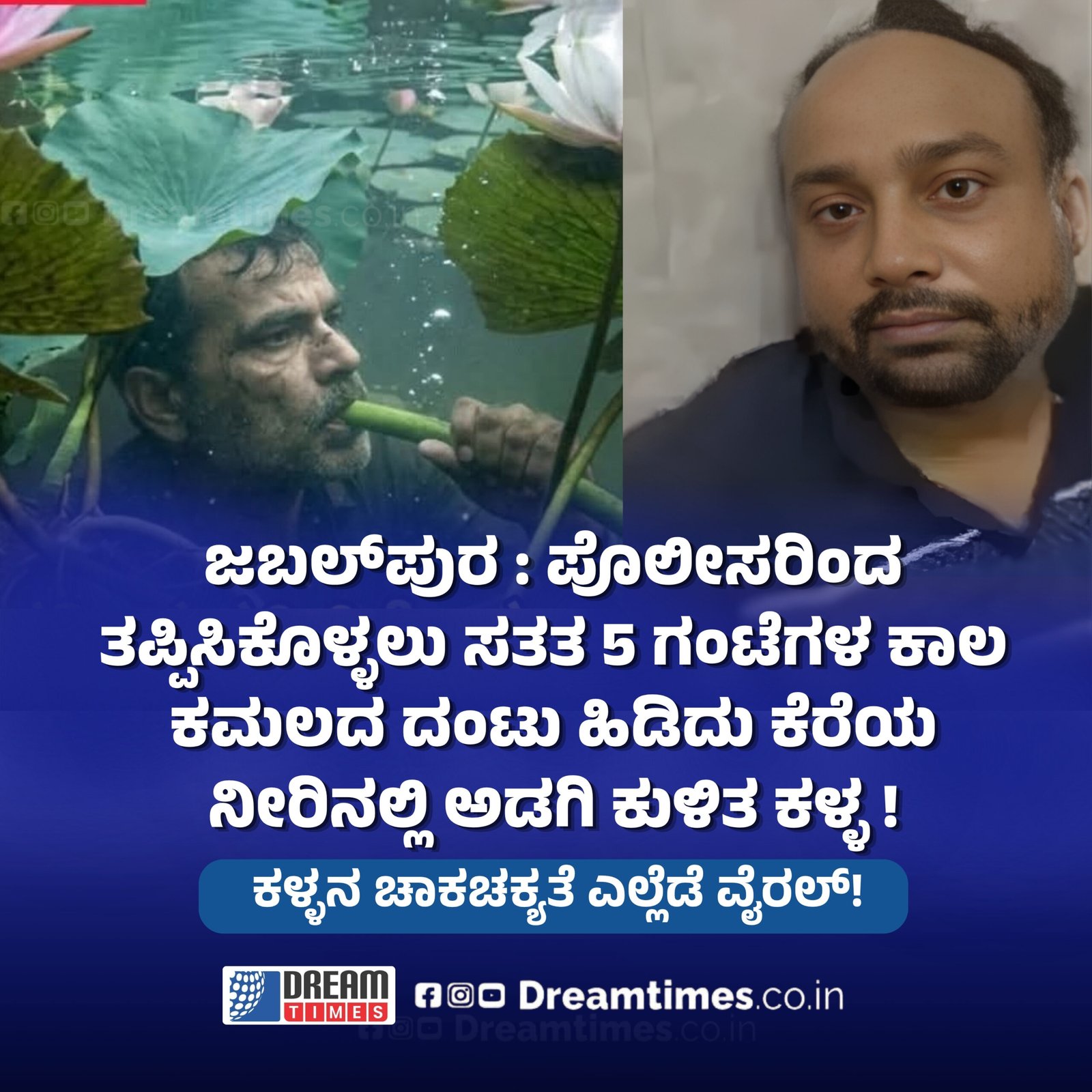 News ಜಬಲ್ಪುರ : ಪೊಲೀಸರಿಂದ ತಪ್ಪಿಸಿಕೊಳ್ಳಲು ಸತತ 5 ಗಂಟೆಗಳ ಕಾಲ ಕಮಲದ ದಂಟು ಹಿಡಿದು ಕೆರೆಯ ನೀರಿನಲ್ಲಿ ಅಡಗಿ ಕುಳಿತ ಕಳ್ಳ !ಕಳ್ಳನ ಚಾಕಚಕ್ಯತೆ ಎಲ್ಲೆಡೆ ವೈರಲ್! BY Irshad April 11, 2026 0 Comments Read in 0 Minutes Spread the love