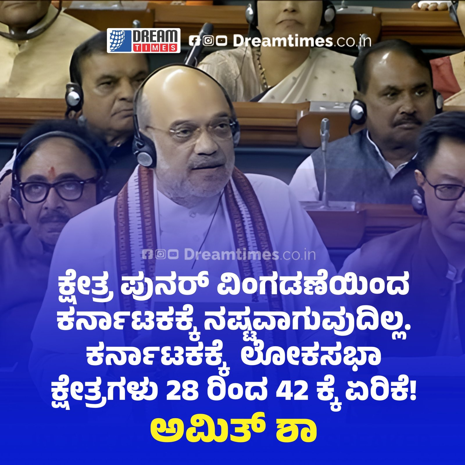 News ಕ್ಷೇತ್ರ ಪುನರ್ ವಿಂಗಡಣೆಯಿಂದ ಕರ್ನಾಟಕಕ್ಕೆ ನಷ್ಟವಾಗುವುದಿಲ್ಲ. BY Irshad April 17, 2026 0 Comments Read in 1 Minute ಕರ್ನಾಟಕಕ್ಕೆ ಲೋಕಸಭಾ ಕ್ಷೇತ್ರಗಳು 28 ರಿಂದ 42 ಕ್ಕೆ ಏರಿಕೆ! – ಅಮಿತ್ ಶಾ Spread the love