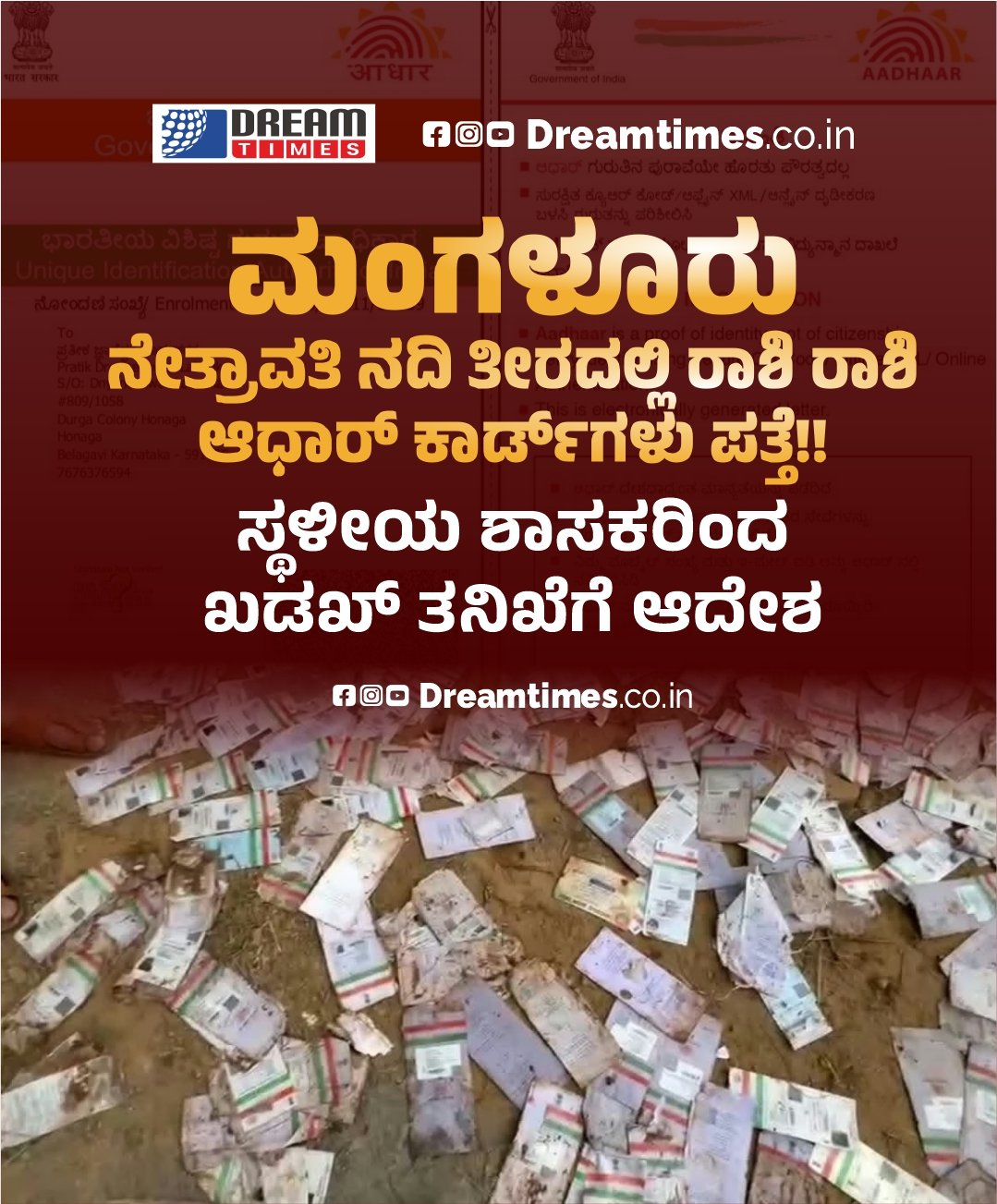News ಮಂಗಳೂರು : ನೇತ್ರಾವತಿ ನದಿ ತೀರದಲ್ಲಿ ರಾಶಿ ರಾಶಿ ಆಧಾರ್ ಕಾರ್ಡ್ಗಳು ಪತ್ತೆ!! ಸ್ಥಳೀಯ ಶಾಸಕರಿಂದ ಖಡಖ್ ತನಿಖೆಗೆ ಆದೇಶ BY Irshad March 6, 2026 0 Comments Read in 0 Minutes Spread the love