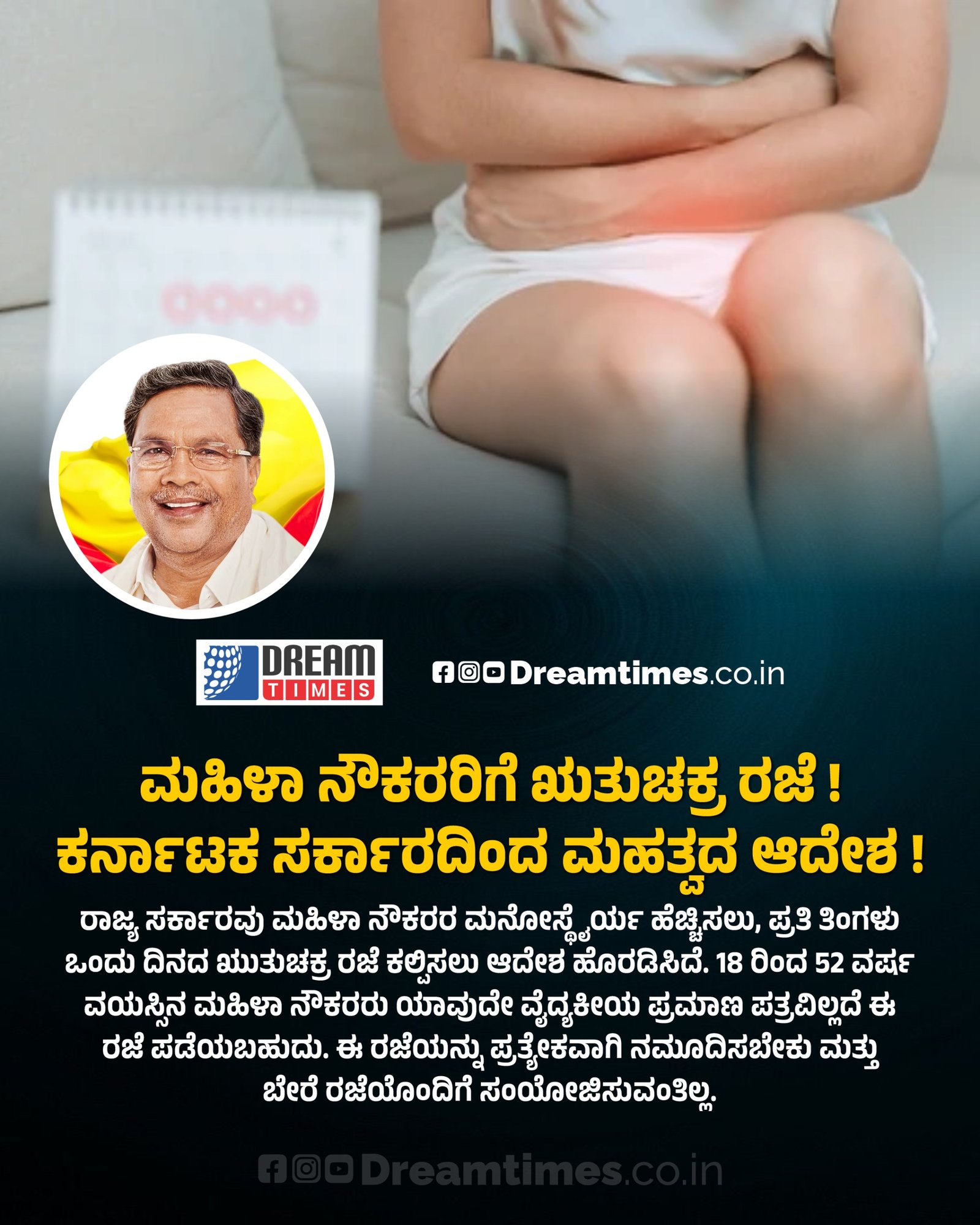 ಮಹಿಳಾ ನೌಕರರಿಗೆ ಋತುಚಕ್ರ ರಜೆ ! ಕರ್ನಾಟಕ ಸರ್ಕಾರದಿಂದ ಮಹತ್ವದ ಆದೇಶ !