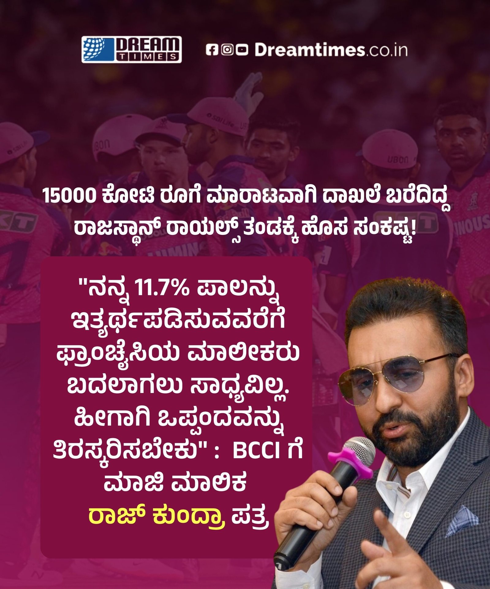 “ನನ್ನ 11.7% ಪಾಲನ್ನು ಇತ್ಯರ್ಥಪಡಿಸುವವರೆಗೆ ಫ್ರಾಂಚೈಸಿಯ ಮಾಲೀಕರು ಬದಲಾಗಲು ಸಾಧ್ಯವಿಲ್ಲ. ಹೀಗಾಗಿ ಒಪ್ಪಂದವನ್ನು ತಿರಸ್ಕರಿಸಬೇಕು” : BCCI ಗೆ ಮಾಜಿ ಮಾಲಿಕ ರಾಜ್ ಕುಂದ್ರಾ ಪತ್ರ