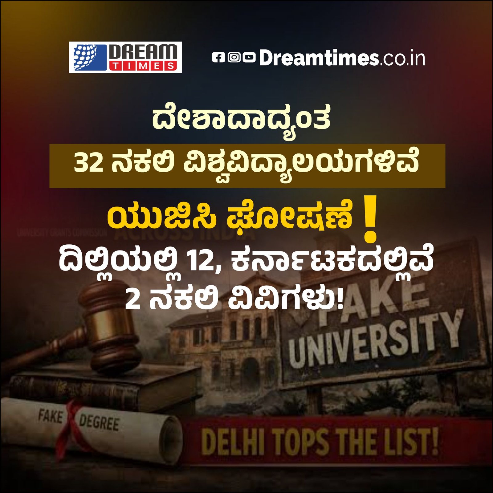 News ದೇಶಾದಾದ್ಯಂತ 32 ನಕಲಿ ವಿಶ್ವವಿದ್ಯಾಲಯಗಳಿವೆ: ಯುಜಿಸಿ ಘೋಷಣೆ! BY Irshad February 24, 2026 0 Comments Read in 0 Minutes ದಿಲ್ಲಿಯಲ್ಲಿ 12, ಕರ್ನಾಟಕದಲ್ಲಿವೆ 2 ನಕಲಿ ವಿವಿಗಳು! Spread the love