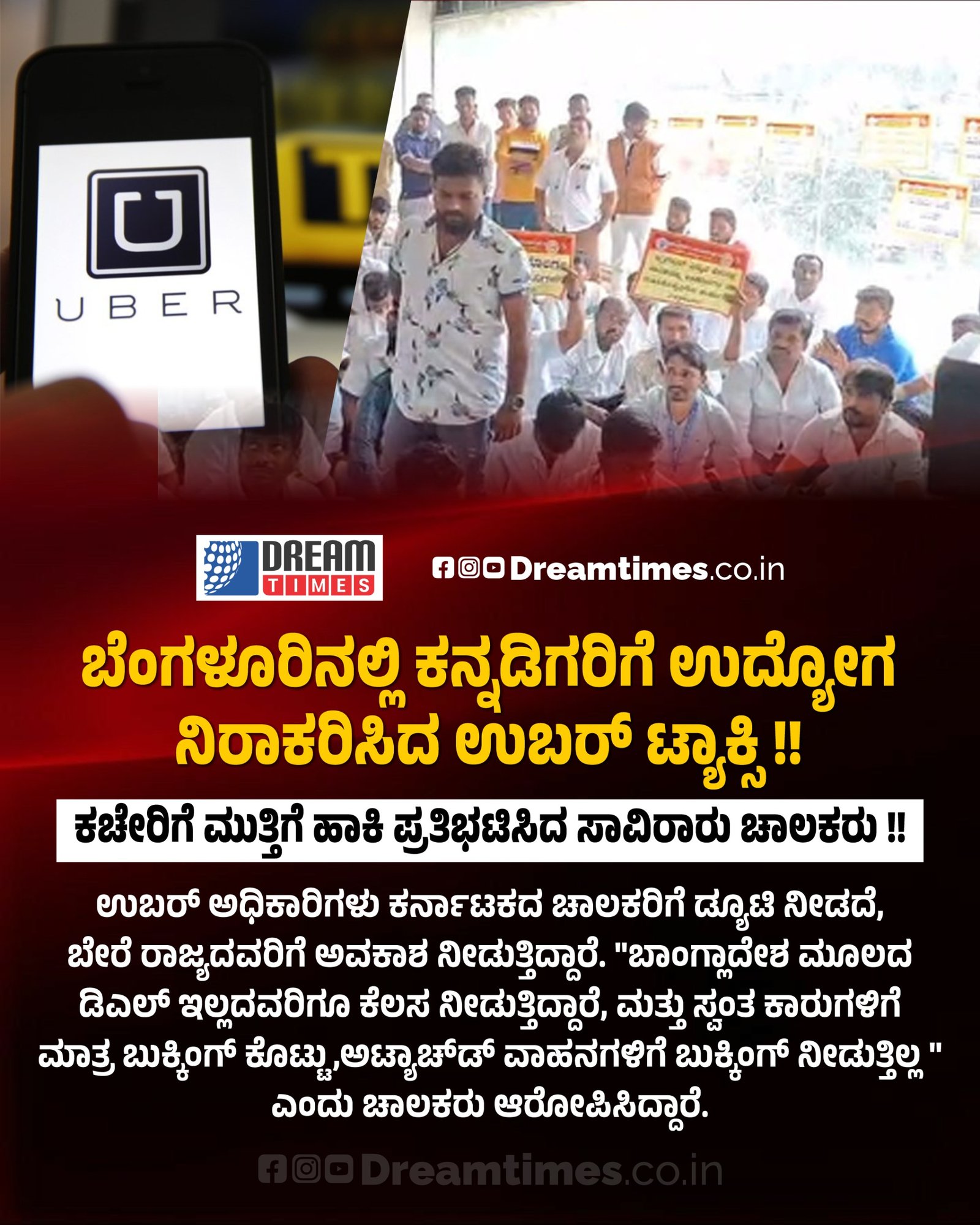 ಬೆಂಗಳೂರಿನಲ್ಲಿ ಕನ್ನಡಿಗರಿಗೆ ಉದ್ಯೋಗ ನಿರಾಕರಿಸಿದ ಉಬರ್ ಟ್ಯಾಕ್ಸಿ !!
